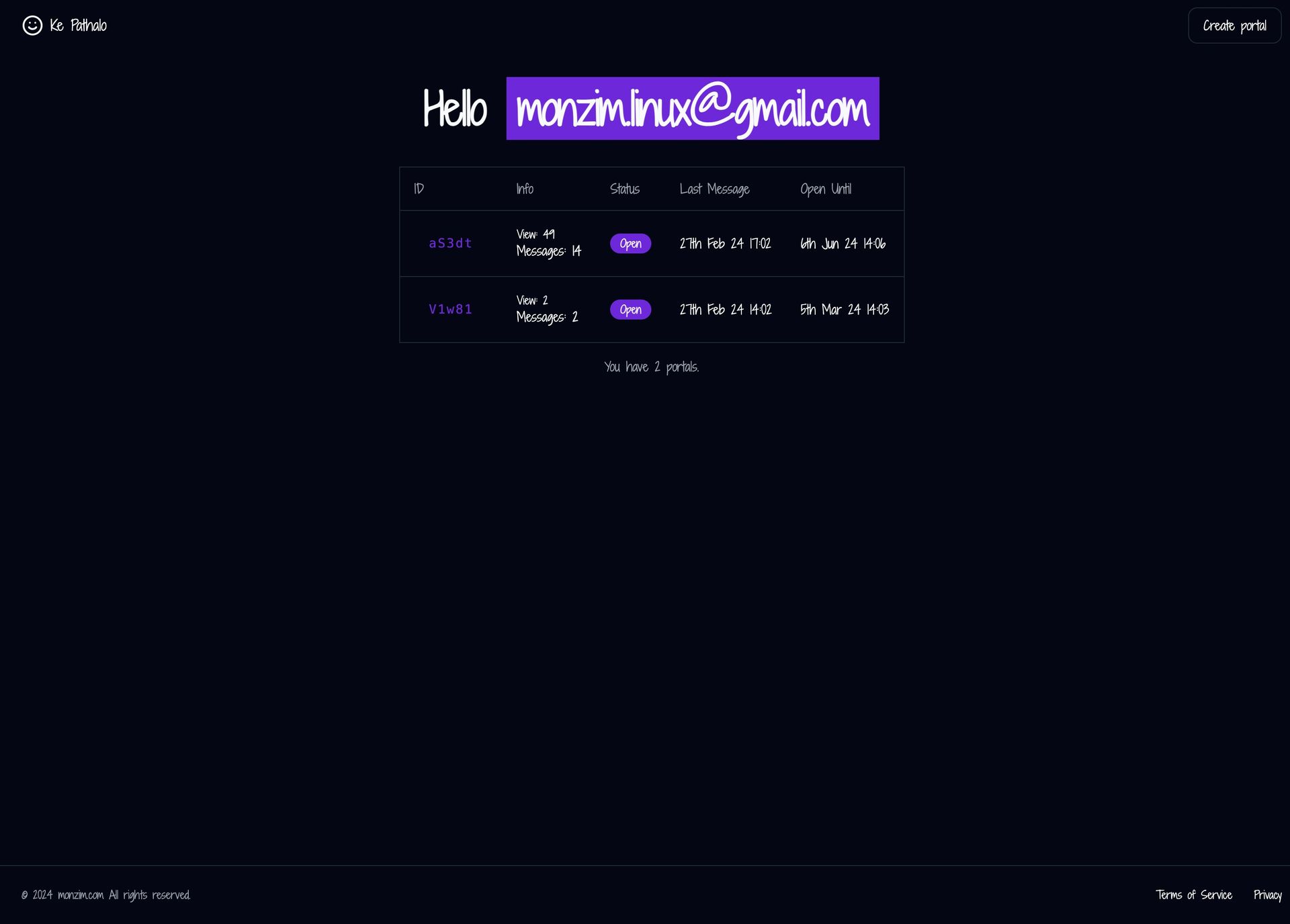 - Portal System: Each user can create a portal, generating a unique link to share with friends. This allows friends to send messages anonymously through the portal.