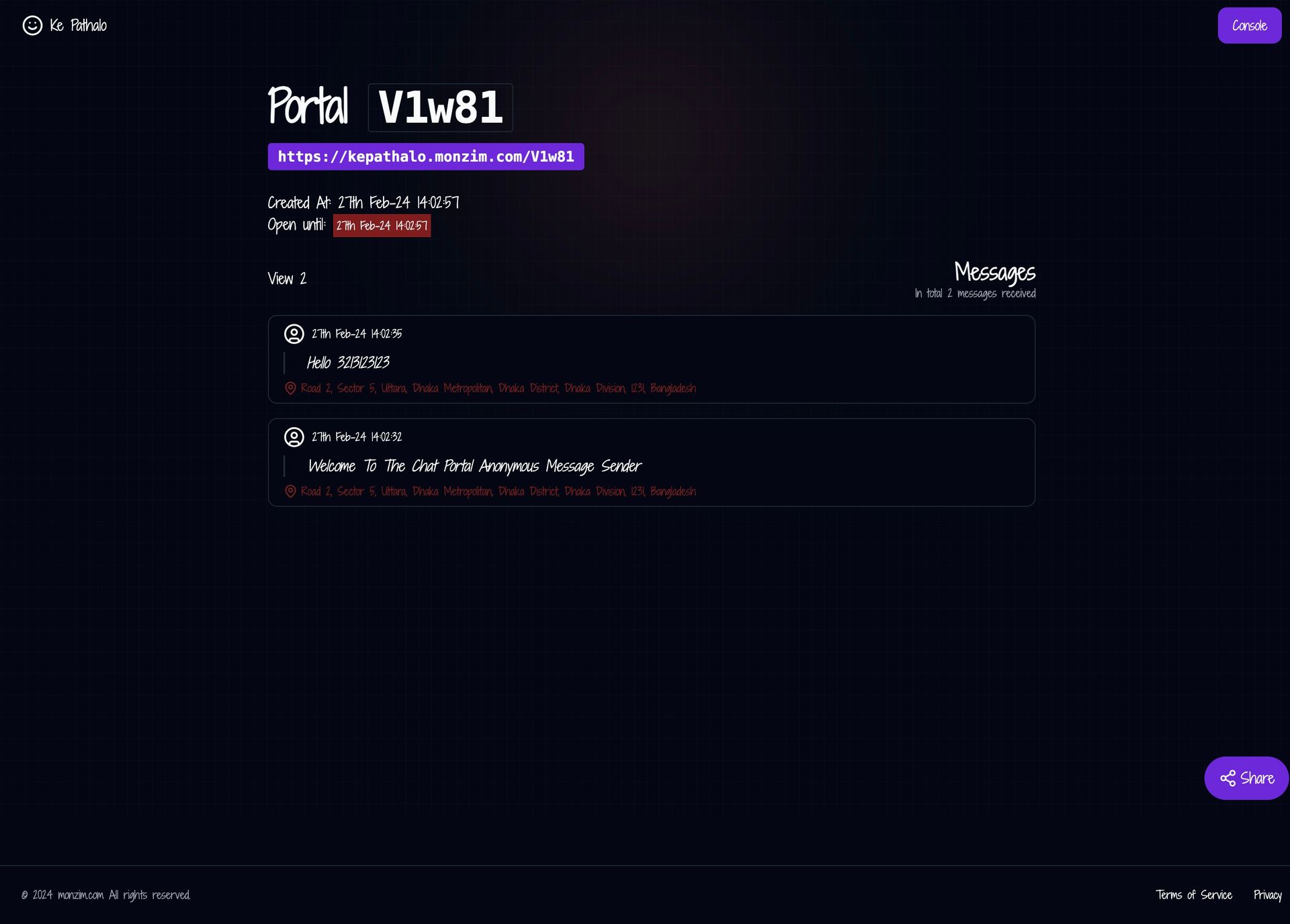 - Explore Message History: View all messages sent through your portal and discover the approximate location of the senders.